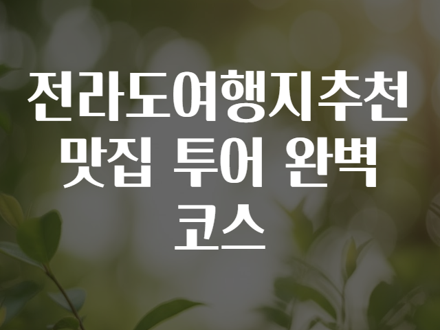 📅 완벽한 전라도 3박 4일 맛집+관광 투어 코스 추천 🗓️